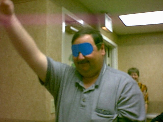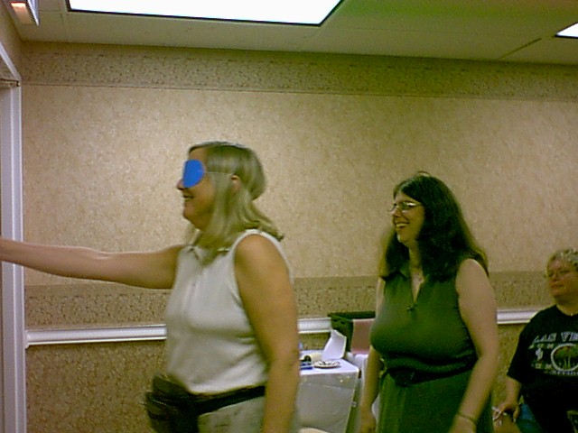 Toonie takes great pleasure in spinning blindfolded Mo around
