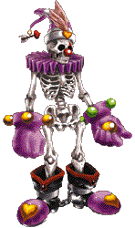 | Like Serge, he is supposed to be dead in Another World. He used to be a circus clown. Skelly approaches you (or, at least, his skull does) in Fossil Valley. Your job is to find his body parts scattered all across Another World (Angry Scapula --> Shadow Forest, Pelvic Bone --> Guldove, Good Backbone --> Hydra Marshes, Ribcage --> Water Dragon Isle, Mixed Bones --> Isle of the Damned). |