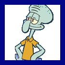 Name: Squidward Tentacles Race: Squid Current Residence: In a face shaped vase in between patrick and Spongebob and Patrick's house. Squidward is an artist who gets annoyed 24/7 by Spongebob and Patrick. His hobby is painting and playing the flute. His best friend is his flute and he is probably the smartest sea creature of all. Then again most of the characters on the show are dumb anyways. He works at the Krusty Krab as the cashier. |