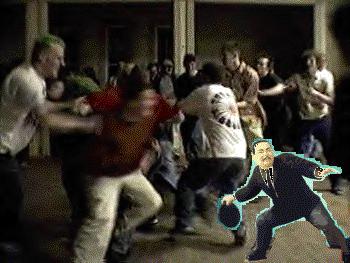 4/14/02 - The Bouncing Souls show on thursday night was awesome. One big highlight of the show was this short asian or philippino looking guy that was dressed in black. Parker pointed him out to me and said that looked like odd job. And he did. It was funny to see some odd job looking guy running around and jumping on people. It looked kind of like this: ![]()