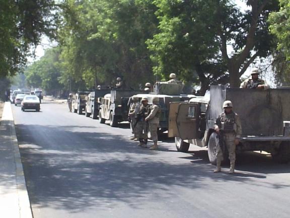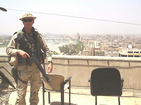 We convoyed downtown and crossed the Tigris River just opposite the International Zone (formerly known as the Green Zone.) We traveled with elements of the 411th Engineer Battalion and 353d Engineer Group, our mission to evaluate a top-priority new project. The project is part of a Division-wide effort (without getting into details) to improve the living conditions of the local populace. Currently there are a majority of Iraqis who are favorable to the US presence, but still a significant percentage who are assessed to be undecided, this based upon their continued struggles with electric power and other basic services in the community. The aim of 1CD is to pull these remaining people firmly over to our side by restoring, rebuilding, and repairing the community, one neighborhood at a time. One of these areas is a place called Abu Nuwas, a former R&R spot for Saddam Hussein and his cronies. It is actually a very pleasant, tree-shaded segment of land next to the Tigris river, with a couple of cottages and small buildings. The plan is to clean this area up, pave some walking paths, fix the irrigation, renovate the buildings, then turn this area over to the citizens under the supervision of the Iraqi mayor of Baghdad. It is ambitious, but should help in a small way to restore some of the luster of this city, which quite obviously used to be a bustling and relatively modern place.