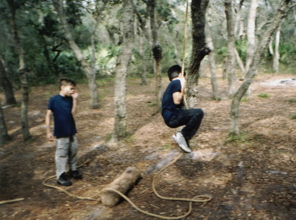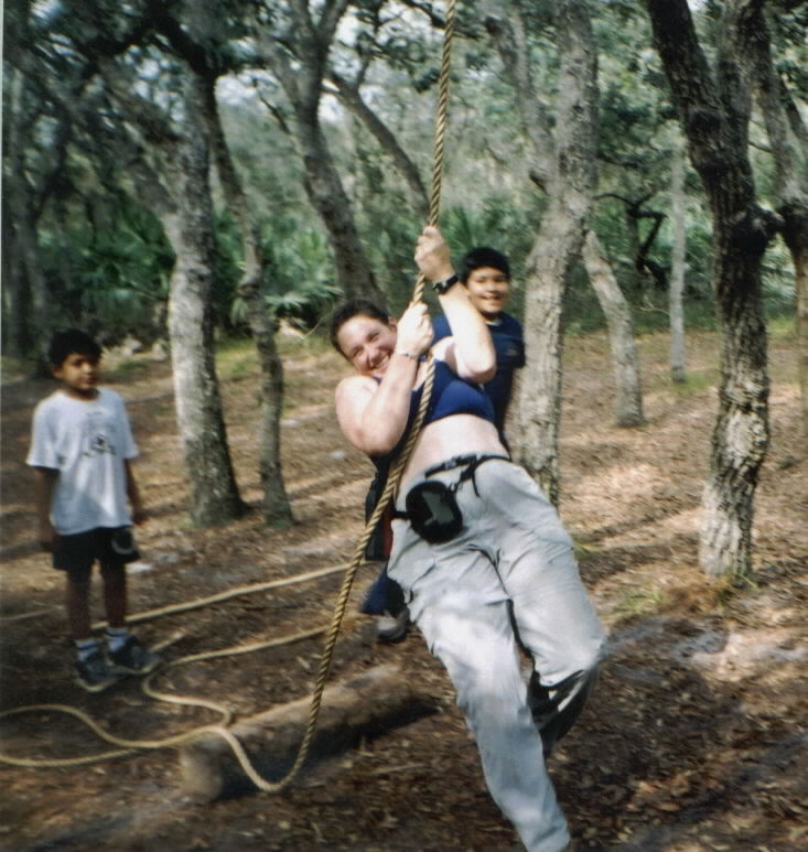 Swinging over the pirahna pit! Miss Tanya made it on the first attempt! Way to go Ms. T!