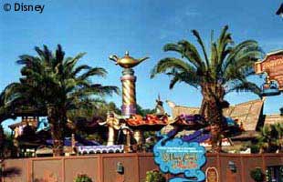 Since this is a new attraction that opened for the 100 years of magic celebration, I have not have had a chance to take a look at this ride. From what I see on pictures and read though I imagine it to be like Dumbo The Flying Elephant or the Astro Orbiter. You'll have more as soon as I get to take a closer look at it. The flying carpets fly around a magical genie as two water-spewing camels spit at riders and spectators alike. |