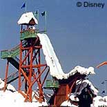 | This is the second water park at Walt Disney World but unlike Typhoon Lagoon's tropical setting, Blizzard Beach is based on the alpine mountains. This park is created around a legend that tells of a freak snowstorm that resulted in Florida's first ski resort but when temperatures rose, the Florida sun turned ski runs into water slides. |