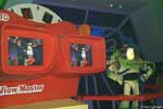 Board your very own star cruiser and help Buzz Lightyear save the galaxy from the sinister Emperor Zurg. As you fly through the various space scenes use your very own laser gun, which actually works with infrared (hey, light is light), and fire away at interactive targets. You score points as you hit the targets and if you score enough, you may even be placed into the ranks of galactic hero. |