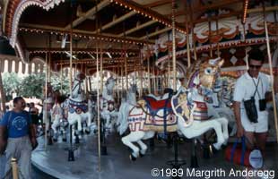 Want to ride on the oldest attraction at Walt Disney World? Then make your way through Main Street and the castle to Fantasyland, where you will find Cinderella's Golden Carousel. In my opinion this is one of the last great carousels in the world. Did you know that it was built in 1917. All the details where made with love, as everything else by Disney, and no two of the horses look alike. |