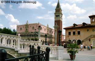 Here is your chance to stroll around Venice, Italy. Well at least a small part of it, without even having to leave Epcot Center. Shop for some authentic Italian artwork, take pictures on Marcus Square or enjoy fine Italian pasta or other delicacies in at Alfredos. Restaurants: For further info on restaurants go to Epcot Restaurants. |