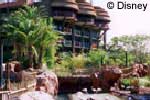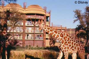 The Animal Kingdom Lodge is a Resort adventure in the making. In this luxury resort located next and partially even in the Animal Kingdom Park most balconies overlook a picturesque Savannah created especially for this resort hotel where giraffe, zebra and other exotic animals roam about a spacious wildlife reserve. Handcrafted furnishings and African decor welcome you to a world of comfort complete with all the beauty of nature and of course all the magic of Disney. The Animal Kingdom Lodge features a variety of animal programs. As a guest at the Animal Kingdom Lodge you will get access to five championship golf courses, a health club, different kinds of pools and much more. |
