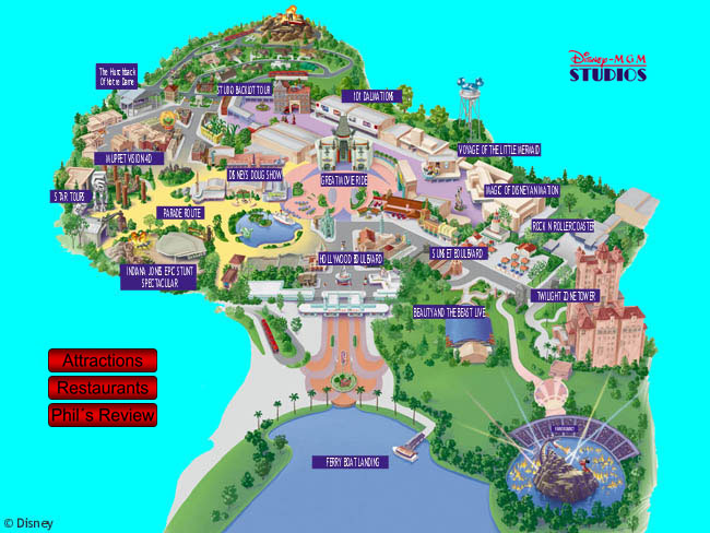 click on parts of the map or the buttons to navigate through the attractions, restaurants and my review