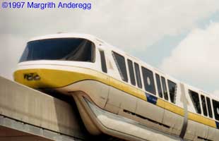 Monorails, the trains of the future. These Walt Disney World Monorails are a bigger version of the ones found at the Disneyland Resort in California. They have got to be the coolest looking trains ever. Very futuristic plus they are quiet and environment friendly! I remember, my sister and I would make bets on what color Monorail we would get to ride on next. At any Disney resort you will never have to worry about transportation, and the Walt Disney World Monorail System is a great way to get around the Magic Kingdom and Epcot resorts. The monorail that circles around the Magic Kingdom resort connects with the Epcot resort monorail at the Transportation and Ticket Center which is adjacent to the Magic Kingdom Parking Lot near Disney's Polynesian Resort Hotel. If you are lucky the conductor will let you ride in the cockpit. You'll have an amazing view from in there! Once you ride the Monorail from Magic Kingdom to Epcot, you'll get a feel for the size of Walt Disney World Resort. Please stand clear of the doors... |