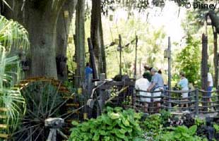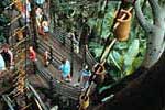 This is probably the biggest Treehouse I have ever seen. It is multiple stories high and it has tons of great features. The Disney Imageneers designed everything so, that it looks like it is made from bamboo and wood and it was built with very simple tools. Well, I guess like the Swiss Family Robinson would have used. By the way the whole tree is Disney made including the thousands of handmade leaves. If you are afraid of heights, then you might not want to go all the way up. |
