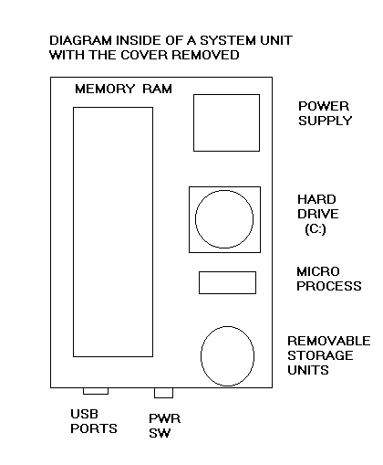 This is a system unit (computer) with the cover removed. This diagram is useful in understanding how the hardware inside a computer works.