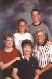 | Jan & her family: Husband, James on the right, Korey behind his father, Katie, and then Kristie. Jim & Jan are proud grand-parents for the first time. Kristie and her husband had a baby boy and they named him Jakob, after his great, great, (maybe another great), grand-father. Jakob was born on Jim's birthday! |