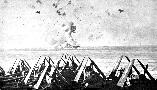 Struck by a kamikaze off Japan, 14 May 1945 - view from