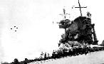 listing heavily after being torpedoed at Midway on 4 June 1942 (45.4)