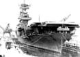 bow view of Yorktown, after bombing by Japanese aircraft at Midway