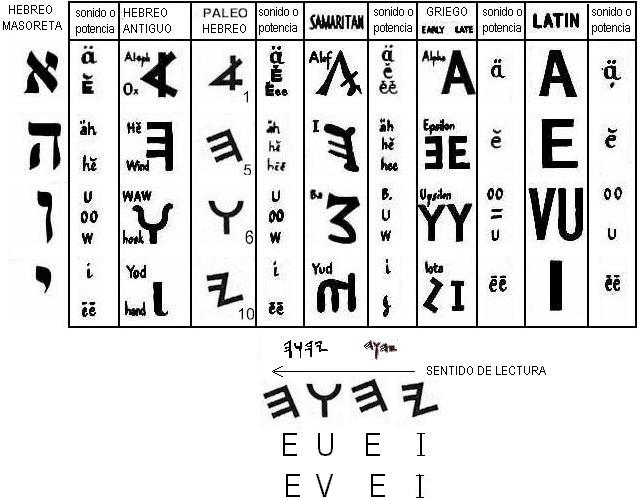 De esta y otras tablas de equivalencias vemos que los caracteres equivalentes del nombre de esta deidad es IEVE