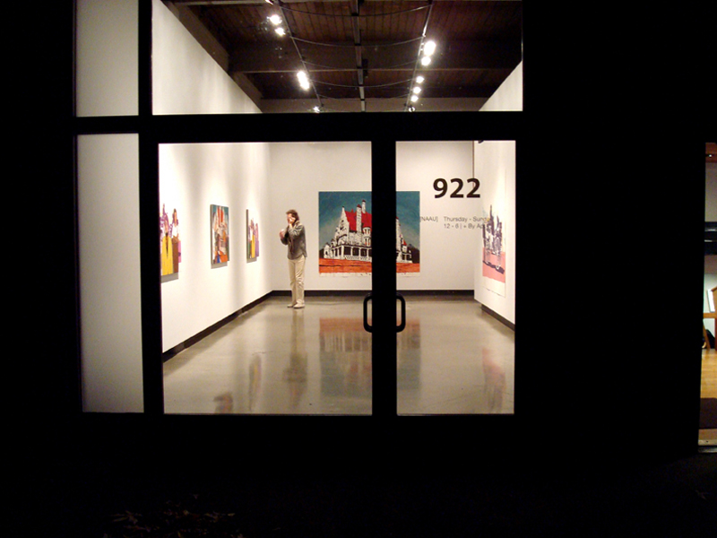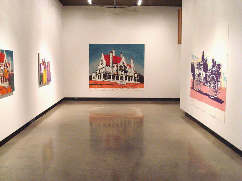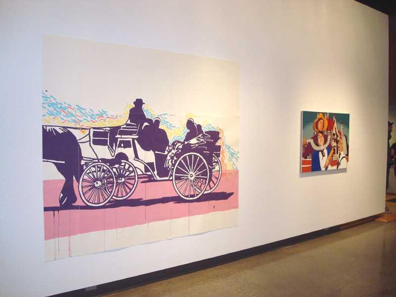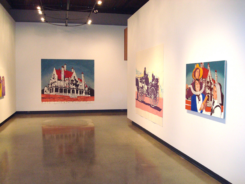 Below are installation photographs of my December 2008 show Class at The New American Art Union in Portland OR. The two additional paintings that can be seen in the shots are both Acrylic on Paper and measure 96 x 109 inches.