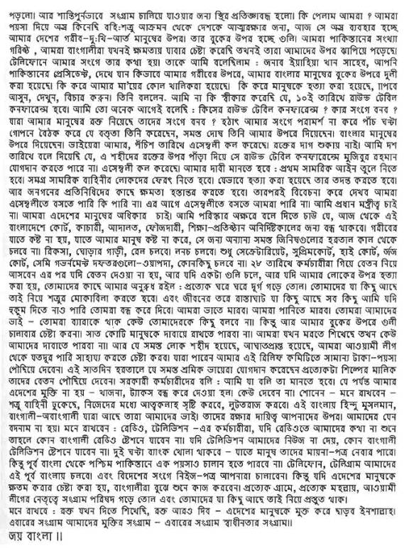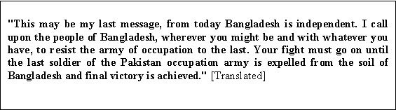 Sheikh Mujibur Rahman, from Kalurghat radio station, Swadhin Bangla Betar