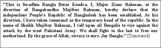 7:45 pm on 26th March 1971, Major Zia under the direction of Bangabandhu
