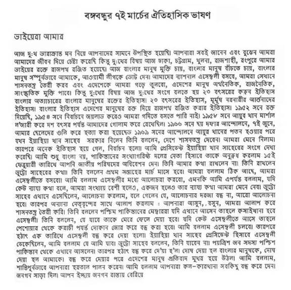 The historic March 7th speech by Bangabandhu Sheikh Mujibur Rahman