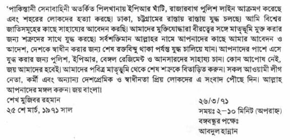 of Independence by Abdul Hannan on behalf of Sheikh Mujibur Rahman