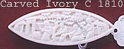 IVORY SHUTTLES. Hopefully modern shuttles made from ivory are scarce, but they were very popular in the 18th and 19th centuries. They range from plane ivory, to those engraved and carved. The most famous of ivory shuttles is the deeply carved ones that came form China for the European market. The commentators on this say that it was pretty useless to tat with, because of the filigree carving that caught on the thread. My own observation on these shuttle is that they are "very" thin (in height) and that you could get hardly any thread on it. I recall chatting to Nerylla about this one day and I said that I thought that they had made the shuttle from a picture, rather than from an actual shuttle. My point is that the makers did not understand the function of the tool, and made to from a picture or drawing that they had, thus it ended up so very thin. We had a laugh and she generously acceded to my idea, but I am not sure if she was convinced!! I said this to Nerylla for a very good reason. I was once asked over the phone to turn a display paper weight for a "bullion" embroidery. I was given rough dimensions and I then made it. It looked good, but the depth that I had left between the glass and the embroidery was far too small. You see, I had no practical idea of just what I was making. Well here is another of Neryllas shuttle for you to look at. The focus is not as good as I would like, but it is the famous Canton carved ivory shuttle.