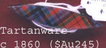 TARTAN WARE. We stay in Scotland for a look at these shuttles. They were a bit like Mauchlin when it comes to the souvenir business (I could not think of that word until now and I used that silly mementoes word up above. But true to speech, I will leave it there. By the way, have you detected my Devon accent yet?) Once more I admit to my ignorance. I thought that the Tartans were painted on the shuttles, so when I started to make these and=d as I could not paint for the life of me, I used tartan ribbons. Well I was not all wrong, they did start by parting them on the shuttles but soon turned to printed paper tartans. So now I have a friend going to Scotland and I have asked her to bring me back some tartan papers to put onto my shuttles. I have it say I found it difficult to explain to here what I wanted over the phone, but I will keep my finger =s crossed. You can tell paper tartan ware from the painted by the fact that the edges of the shuttle are painted black. (To hide the edges of the paper) We are probably up to the 1870s now with these.