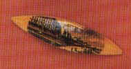 NB its says horn, but that is not correct. Sorry. Despite it all I love tortoise shell. MAUCHLIN WARE. This is where my knowledge of treen comes in handy. For years I thought it was a town in France! How ignorant can you be especially for a person whose two children were born in Scotland. Mauchlin (pronounced Mock-lin. like Strachan is pronounced Straahn !!) It's just inland from Ayr on the West coast of Scotland. Mauchlin was part of the great tourist memento trade (though much more tasteful than the current crop of mementoes) They made snuff boxes, pill boxes and any other sort of small treen that you think of (well almost) and... they made tatting shuttles. Once again I was conned. I thought that the drawings on the shuttles were pen and ink, but no, they are transfers made to look like pen and ink. (I should have known really, but I have never seen two pieces of Mauchlin ware having the same picture together.) The shuttle date from the 1850s. Any way, the transfers are made on Japanese paper in reverse. They are placed on the shuttle "ink" side down and moistened, or rather kept moist for about two hours. The paper can be gently taken off any the picture remains. The shuttle is varnished. The wood is mostly sycamore as it is grown in the region. The transfers were also made there as far as I can tell. Don't be fooled into thinking that you shuttle with a picture of the Niagara falls or any other foreign place, means that it came from that country. Mauchlin exported for the trade with what ever pictures that they wanted on them! Later some were made with a black and white photographs, these can be identified by a yellow or black line around them. Just as final piece of trivia for the Australians reading this. yes you can find Mauchlin ware with Australian pictures on them. (Mind you I have never seen one.)