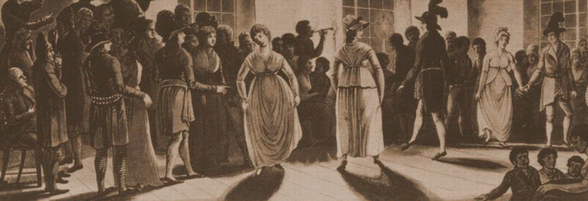 Dans "le menuet chez les Canadiens", le peintre écossais George Heriot illustre des Canadiens en tenue