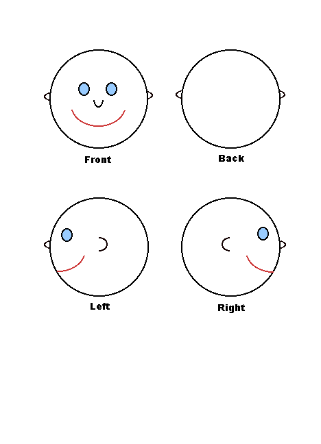 Draw your scar on the head as you want it to appear on your doll. If your scar goes over the top of your head, use the view called "back" and tell me that's what you did. If you have a cleft lip, just use the front and don't worry about the side views.