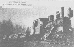 Mr. Hill purchased several small parcels in the Goblintown area and leased 7,500 acres of John A. Hairston’s former lands from Ann M. Hairston and others for the lumber thereon. In 1905, the Virginia Ore and Lumber Company was incorporated in the Commonwealth of Virginia with principals Frank A. Hill, Herbert D. Lafferty, Junius B. Fishburn, Edward I. Stone, and Thomas W.Goodwin. On 25 August of that year, the Hills and Laffertys sold their 4,840 acres, then called "Union Furnace Iron Works", to the Virginia Ore and Lumber Company in exchange for payoff, with interest, of the final $8,888.89 installment on the note held by the Barksdale heirs of the Hills and Laffertys (Patrick County Deed Book #34, page 193). Mr. Hill also transferred his other interests in the area, including the 7,500 acre leasehold, to the VO&L. The area was given a new name, "Fayerdale", concocted by Alice Hill from her husband’s first initial, his middle name, and Herbert Laffertys middle name.