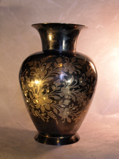 Brass Vase(East India) | Enamelled & Hand-Carved 25.8cm/10.2" H, 18.3cm/7.2" dia |