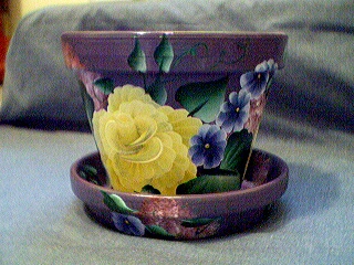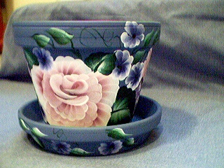 Here are a few examples of a custom painted pot. If you would like to buy one of these please feel free to contact me. Or if you would like to pick out you favorite colors I could paint a pot thats just for you. ALL OF THE CUSTOM PAINTED POTS HAVE BEEN SOLD