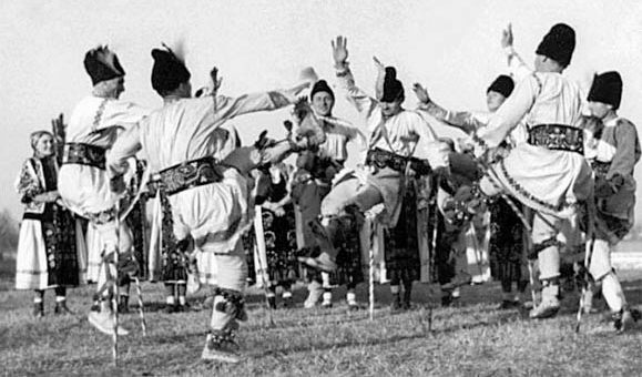 "May it turn into ashes!’". The anastenarides try to extinguish the fire with their feet when they step on the coals as, in this way, they believe they will kill evil and diseases.