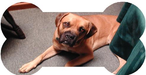 I'm a natural-eared Boxer. (Please don't call me flop-eared!) Whew! Thank goodness they didn't lop my ears off and then pin 'em up like some owners do. I guess I was too old when I was rescued for them to do that. I'm not sure where my tail went. One day when I was a wee puppy, I looked back there and it was GONE! I know I HAD one because I used to have lots of fun chasing it! But, that was before... (sigh)