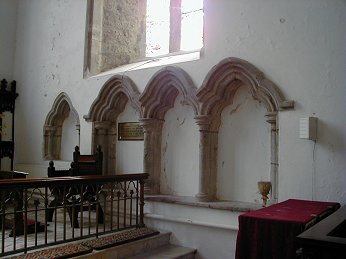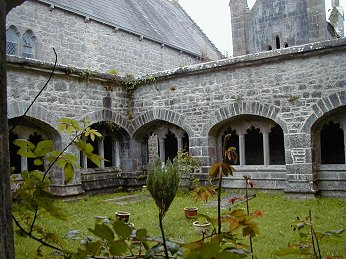 It has a very compact cloister, which may be a partial 19th century restoration. The arcade is in three groups of three on each side. At the rear is a large 19th century mausoleum built by the Dunraven Family.