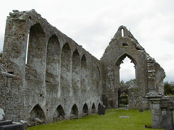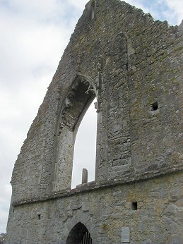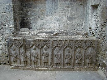 The main point of interest in the friary is the effigy tomb in the north wall of the chancel. This shows a lying figure in a long robe with his feet on a dog. There are two panels showing eight weepers. These are soldiers wearing pointed helmets and long chain-mail coats. Seven of them carry swords and the other has an axe. This is one of the few tombs in Ireland showing military weepers. The effigy is of Felim O Conor and dates to the end of the 13th century. The rest of the tomb is 15th century date.