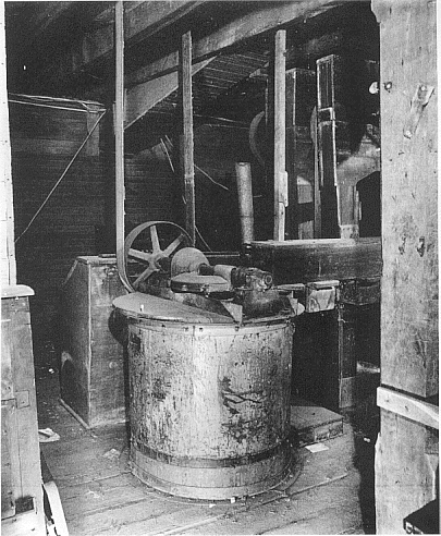 Photo Number: #12. Floor Number-Item Numbers: 2/3. (See: Floor Level 2. Second Floor Plan) Items in Photo: Animal feed mixer. Provenance - Manufacturer (if known): Robinson Mfg. Co., Muncy, Pennsylvania. Dimensions, Yield, Capacity, Output, and Additional Information: Size No. 21. Catalog Documentation: Various catalogs, Flour Mill Machinery, Flour, Corn, Cereal, and Feed Mill Machinery, Robinson Mfg. Co, Muncy, Pennsylvania. U. S. A.