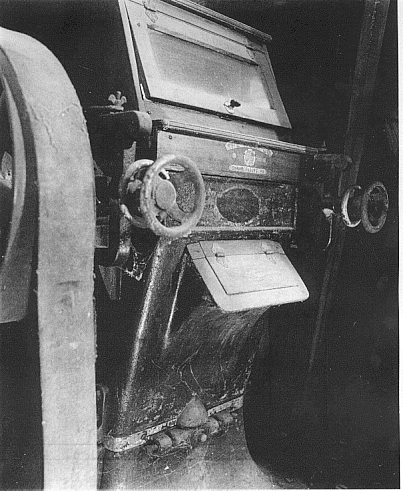 Photo Number: #6. Floor Number-Item Number: 1/13. (See: Floor Level 1. First Floor Plan-"The Road level") Items in Photo: Break Roller - Force Feeder Provenance - Manufacturer (if known): Wolf Company, Chambersburg, Pennsylvania. Dimensions, Yield, Capacity, Output, and Additional Information: No. 1140. Catalog Documentation: "Flour Mill Machinery (Corn, Feed, Cereal, and Alfalfa), Flour, Corn, Cereal, and Feed Mill Machinery, Complete Accessories, The Wolf Company (Established 1879, "Complete Modern Mill Builders and Engineers"), Chambersburg, Pennsylvania. U. S. A., 1922.