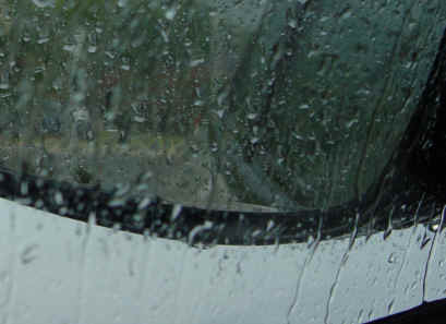 I was in the grocery story parking lot, stuck in the car when a sudden rainstorm hit.