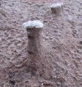 "Sand Sculpture" - Mole Cricket tracks, and "Room With A View" - A look at what's inside a plant gall when the "roof" is lifted!