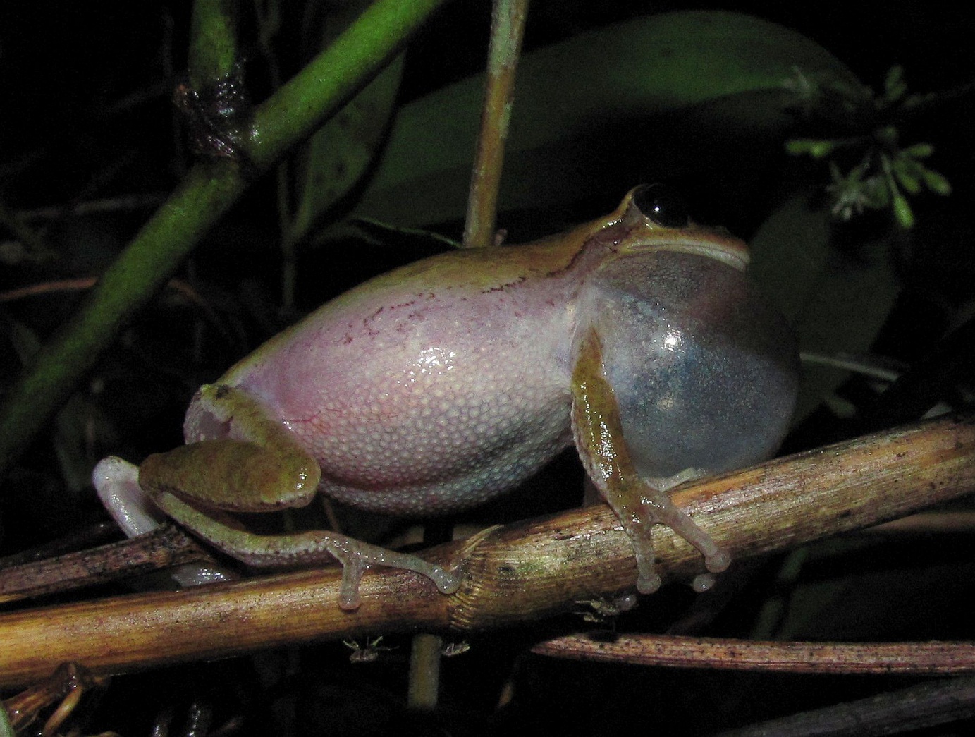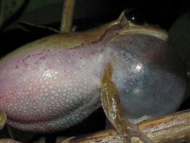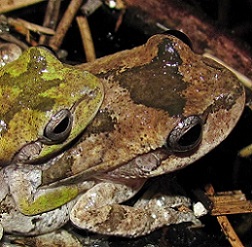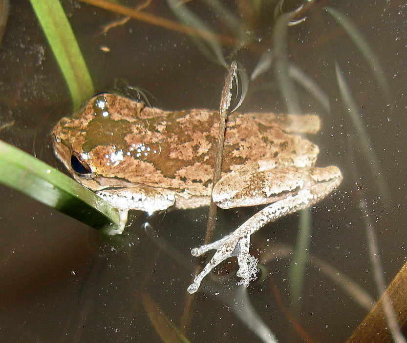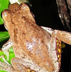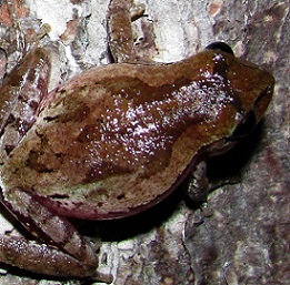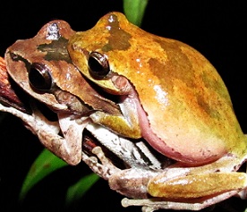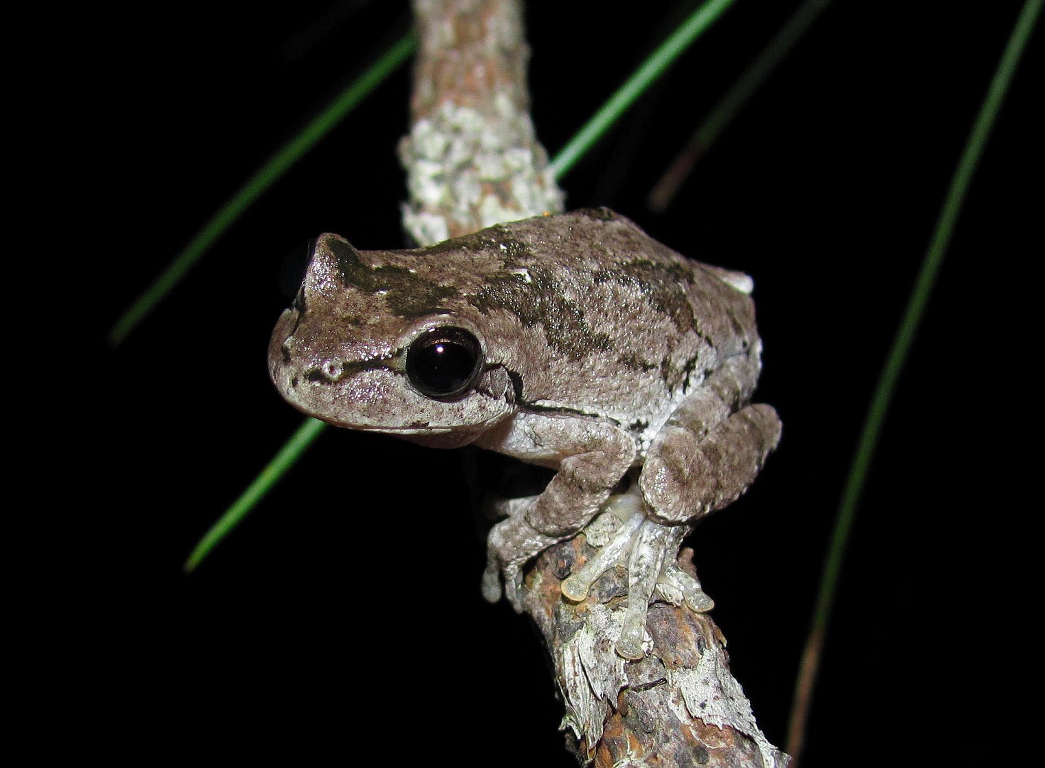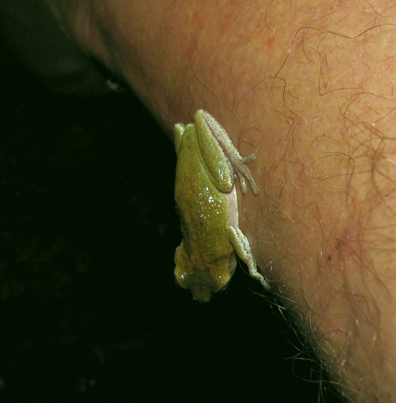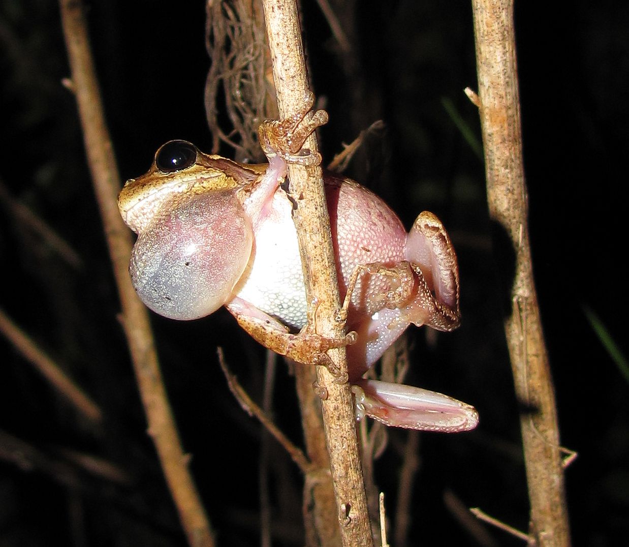 Hyla femoralis. These seem to breed in more acidic water, and come to civilization a little less often than others, but they are still fairly common, and can be heard calling from a variety of places, especially ahead of a storm! Their call is "Morse Code"-like, and can be easily recognized as they call from the wooded shoreline of a marsh or small pond, or from the trunks of trees standing in shallow water. These were taken near St. Augustine, Florida.