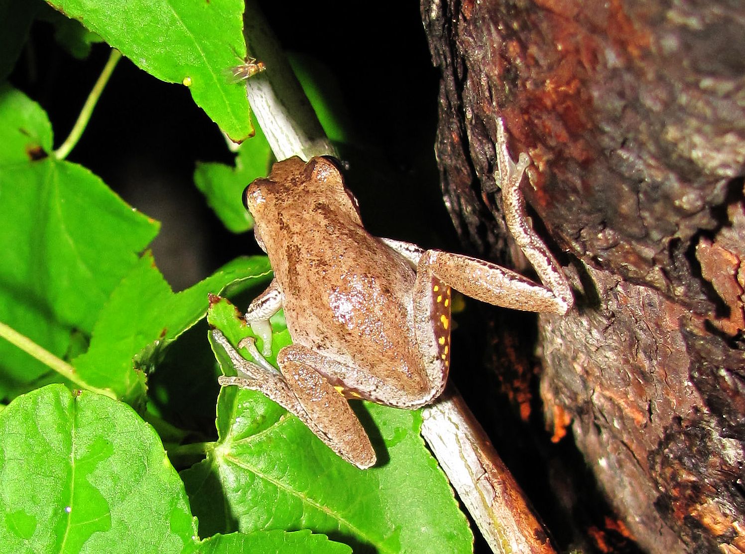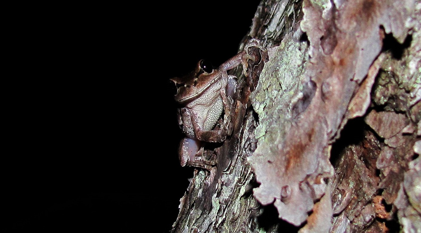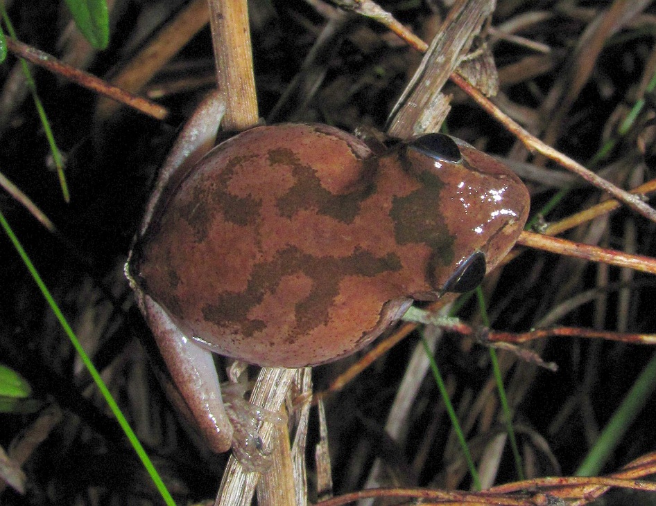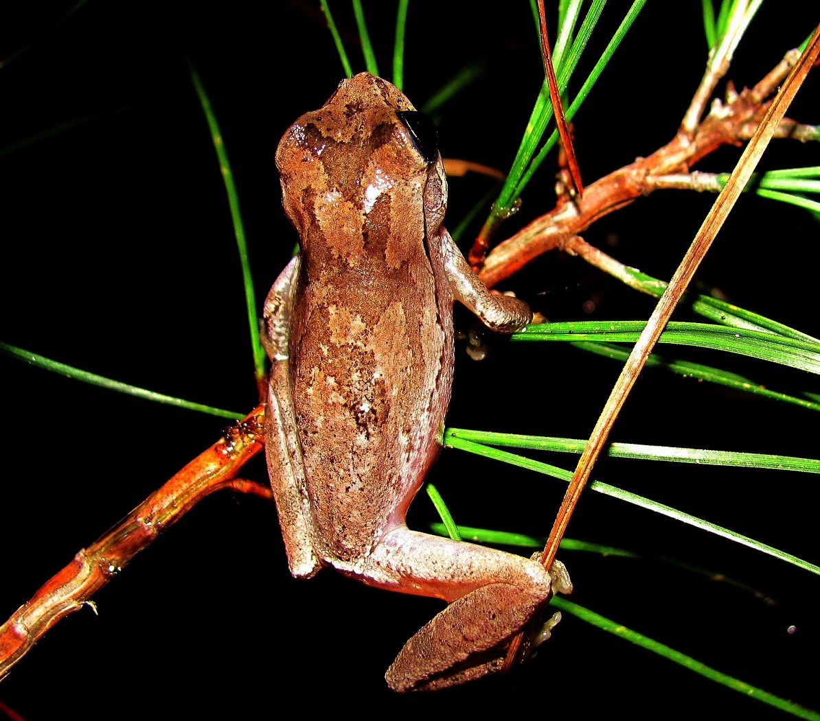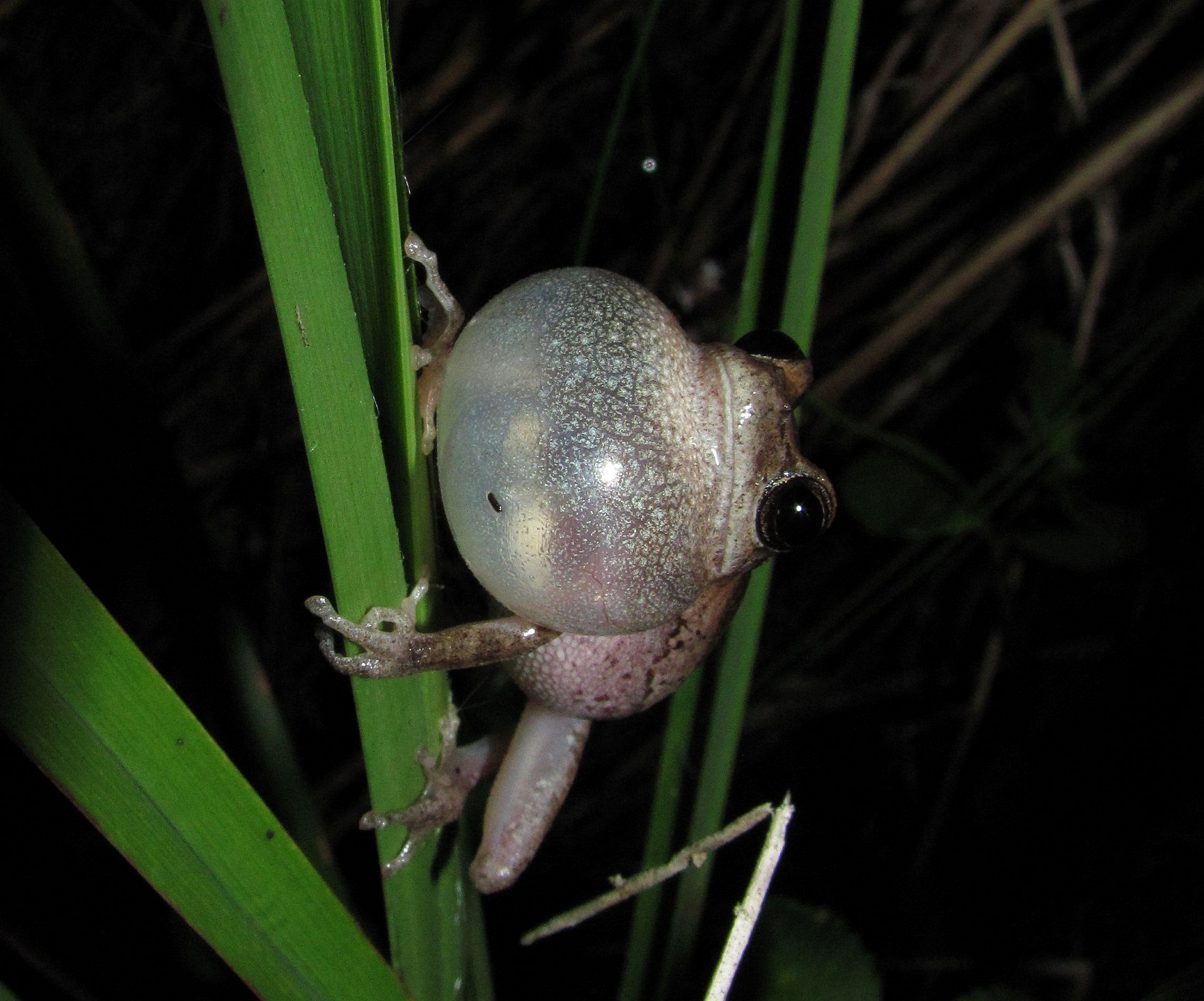 Hyla femoralis. These seem to breed in more acidic water, and come to civilization a little less often than others, but they are still fairly common, and can be heard calling from a variety of places, especially ahead of a storm! Their call is "Morse Code"-like, and can be easily recognized as they call from the wooded shoreline of a marsh or small pond, or from the trunks of trees standing in shallow water. These were taken near St. Augustine, Florida.