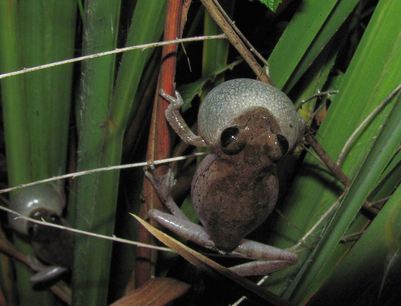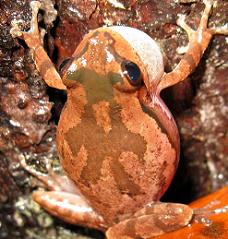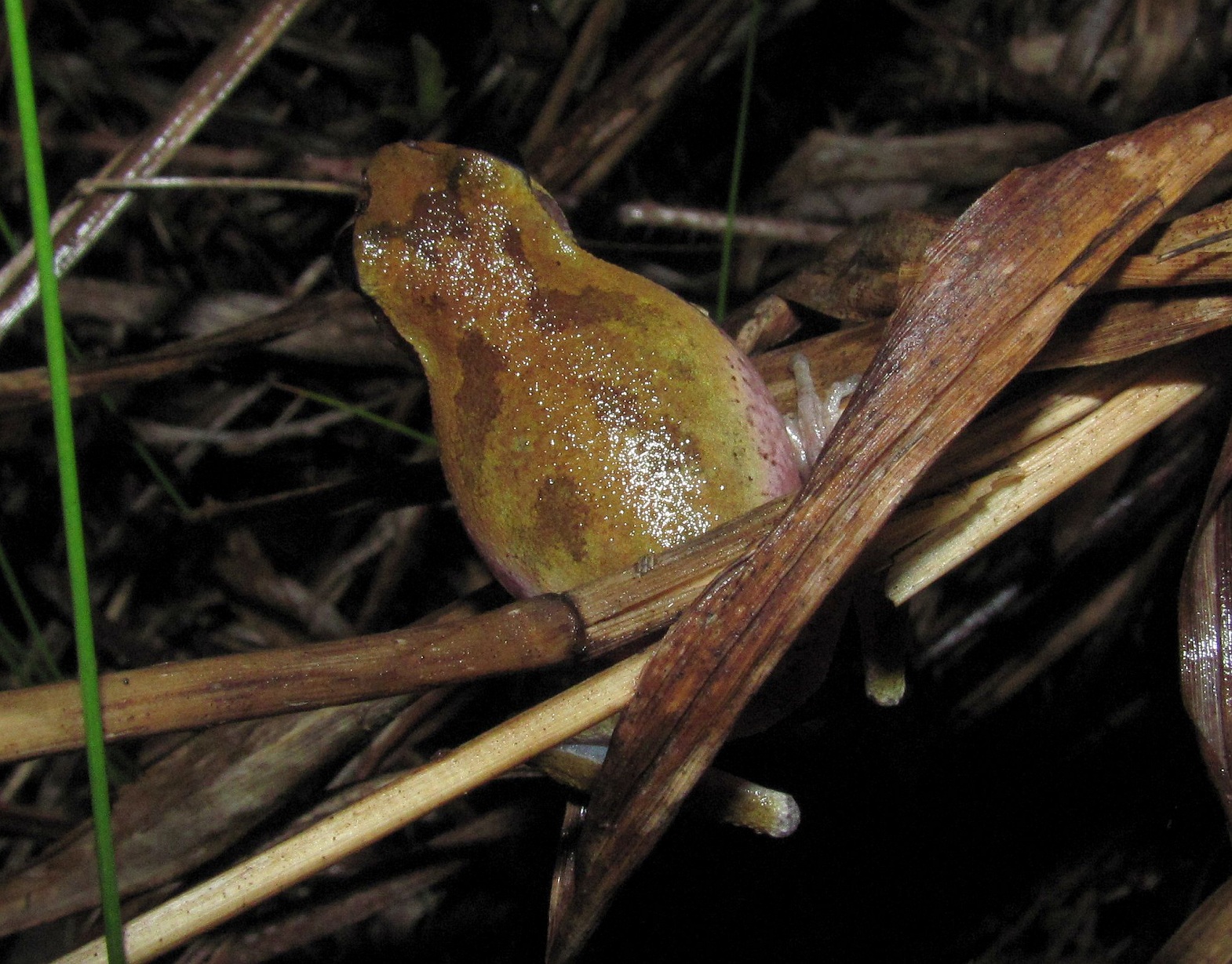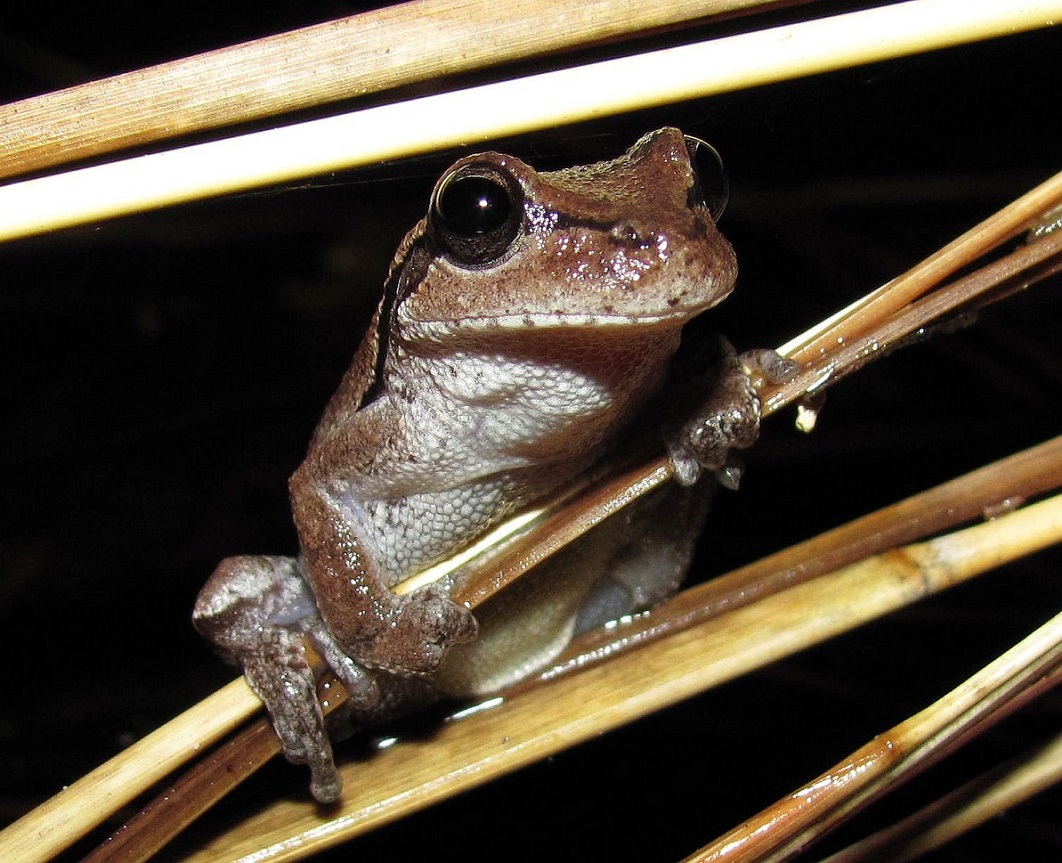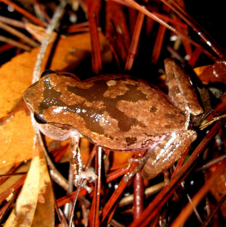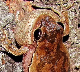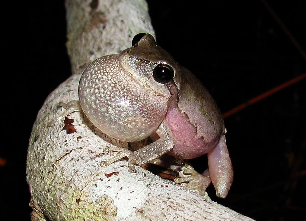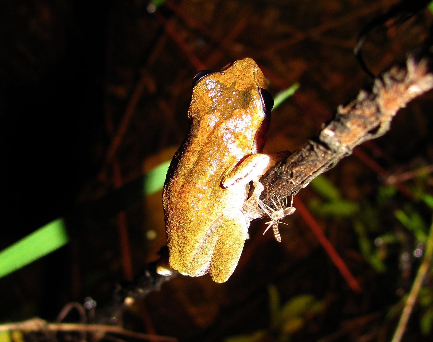 Hyla femoralis. These seem to breed in more acidic water, and come to civilization a little less often than others, but they are still fairly common, and can be heard calling from a variety of places, especially ahead of a storm! Their call is "Morse Code"-like, and can be easily recognized as they call from the wooded shoreline of a marsh or small pond, or from the trunks of trees standing in shallow water. These were taken near St. Augustine, Florida.