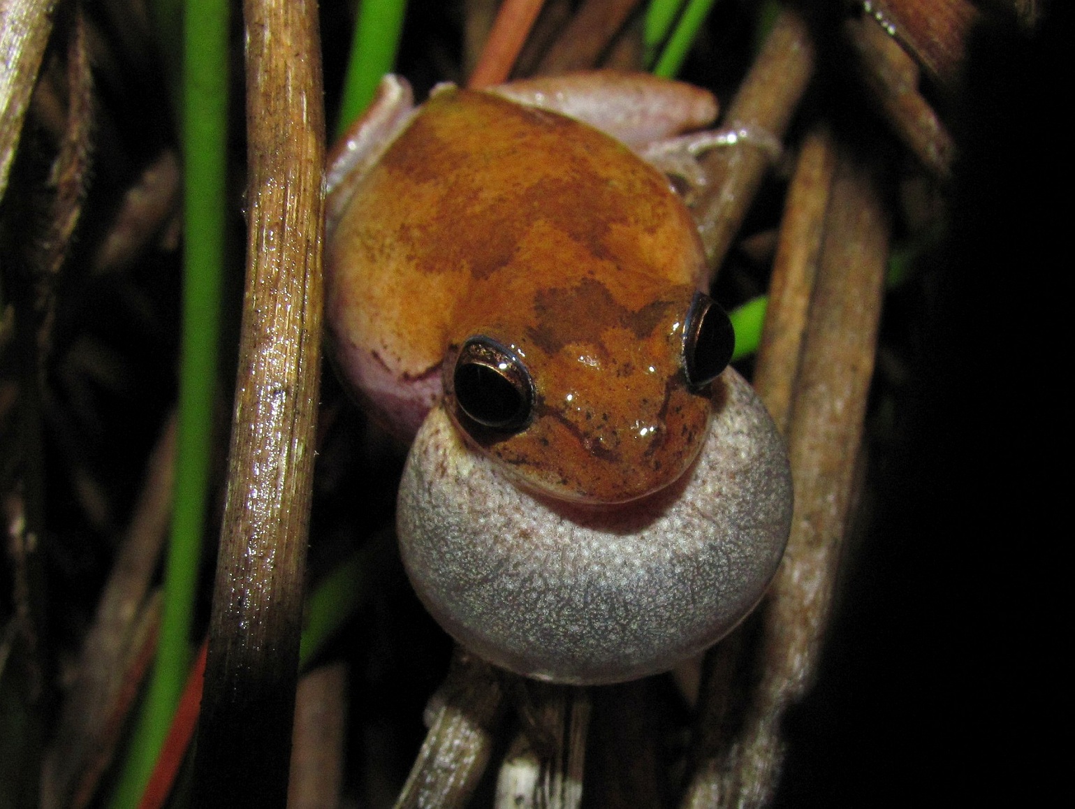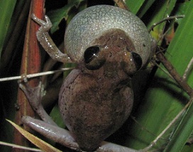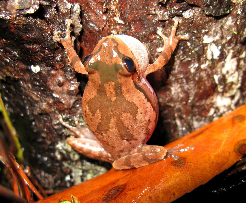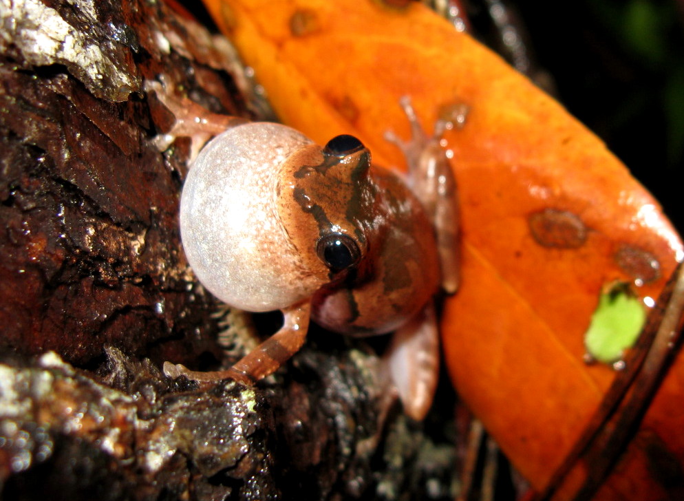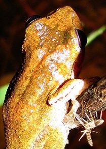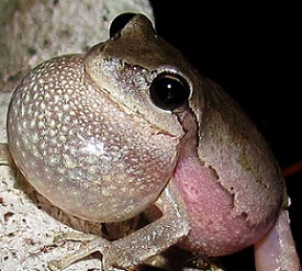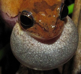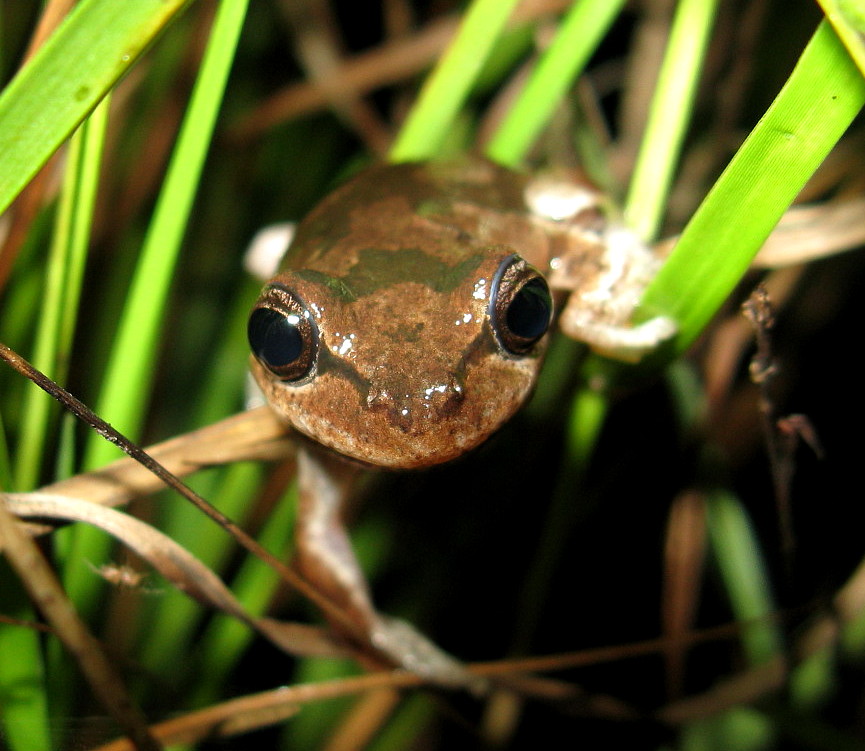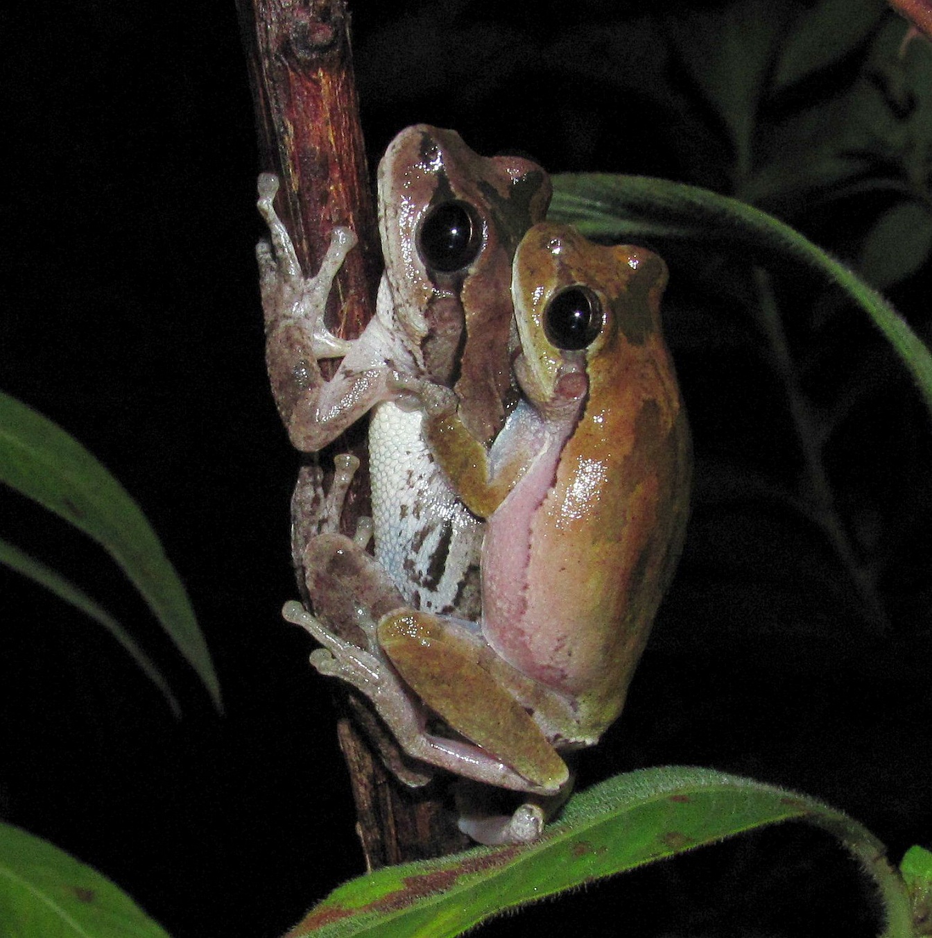 Hyla femoralis. These seem to breed in more acidic water, and come to civilization a little less often than others, but they are still fairly common, and can be heard calling from a variety of places, especially ahead of a storm! Their call is "Morse Code"-like, and can be easily recognized as they call from the wooded shoreline of a marsh or small pond, or from the trunks of trees standing in shallow water. These were taken near St. Augustine, Florida.