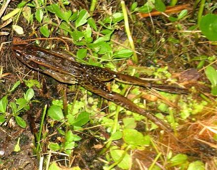 This N. Leopard frog is shown here eating a lizard (the head, tail, foot, and dewlap are visible in its mouth), and this frog in turn was eaten by a Red-Shouldered hawk!