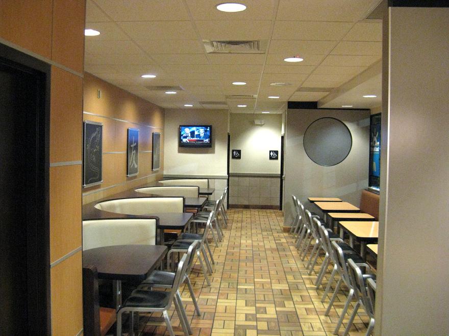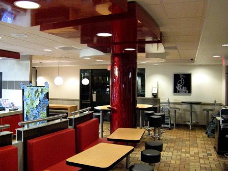 This is our lobby after remodeling, and we now have a smooth and relaxing "Asian" look about us! We also now have the McCafe in our store, and people are flocking to it..... and we grind our own coffee beans and have the WORKS.... and unlike Bean Street, Seattle's Best, and OTHER major similar coffee chains, we kept our bright and lively background music! Of course we have the entire McD's menu besides..... so it's no wonder we are number one! Come on in for a hot, steaming cup of Mocha.... and a bite to eat :-)