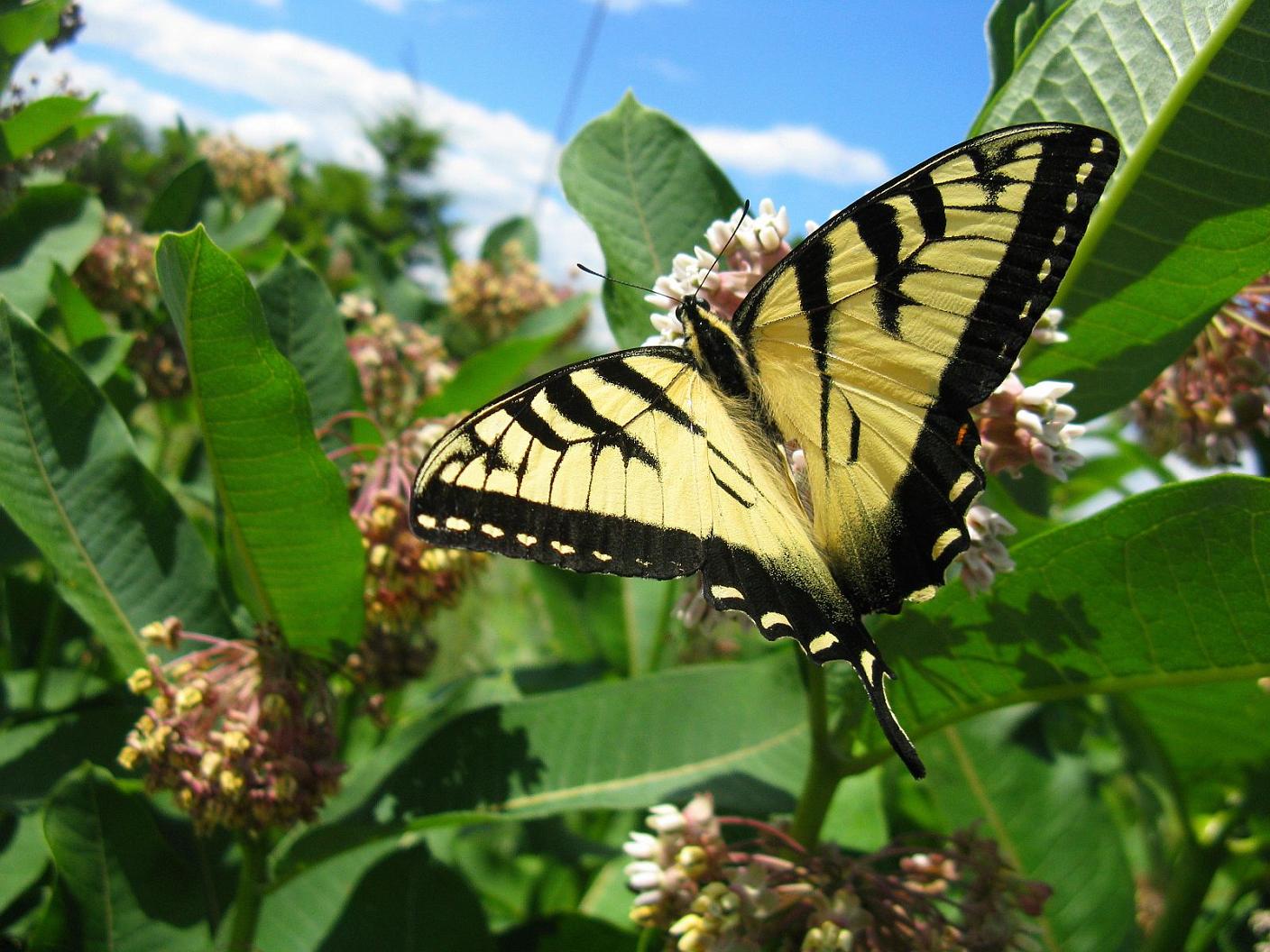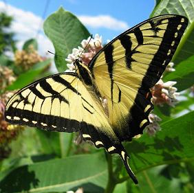 A male Tiger Swallowtail pauses to dine on this milkweed
