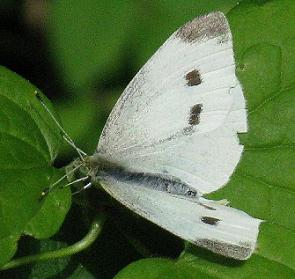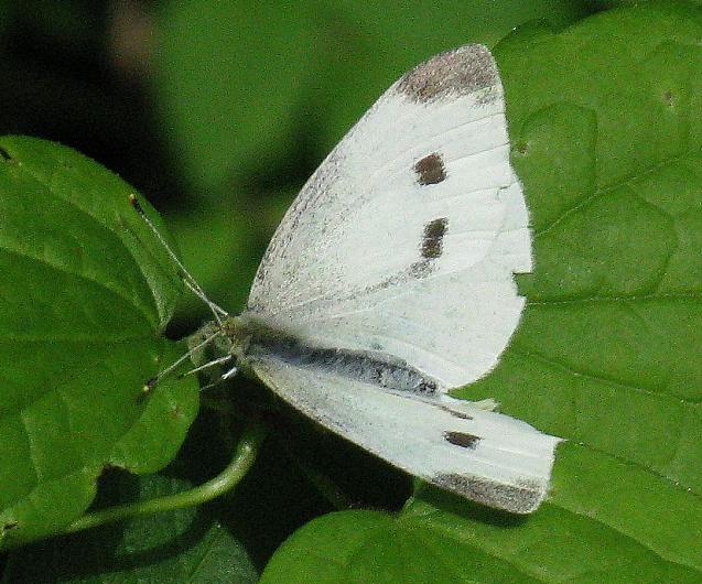 This is the Cabbage White. This one is not native, and inhabits about every area, and thankfully, its larvae feed on "weeds" in the mustard family, and sometimes becomes a garden pest when it discovers your cabbage patch!